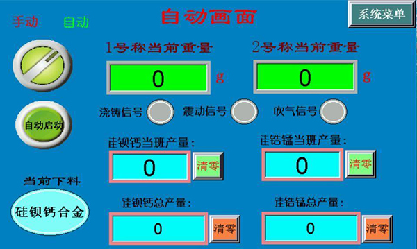 國內(nèi)大多數(shù)的廠家選用的方式是控制孕育流量(單一的螺旋給料或者螺旋給料加流量計(jì)方式),基本界面如下: