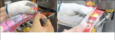 成型器是立式顆粒包裝機(jī)的重要組成部分,如果沒(méi)有調(diào)節(jié)好,制出來(lái)的包裝袋子就會(huì)不美觀,變形不對(duì)齊等。對(duì)于制出來(lái)的包裝袋通常遇到的問(wèn)題就是包裝袋背封(縱封)左右不均勻(如下左圖圖)或是包裝袋子左右兩邊不均衡(如下右圖),造成這些問(wèn)題的主要原因就是小型立式顆粒包裝機(jī)象鼻式成型器沒(méi)有調(diào)整到標(biāo)準(zhǔn)的狀態(tài)導(dǎo)致的。一個(gè)象鼻式成型器的標(biāo)準(zhǔn)狀態(tài)就是,成型器正面是否在中心線,側(cè)面看成型器的平行度、俯視導(dǎo)向角在橫封封合線上這三個(gè)標(biāo)準(zhǔn)。